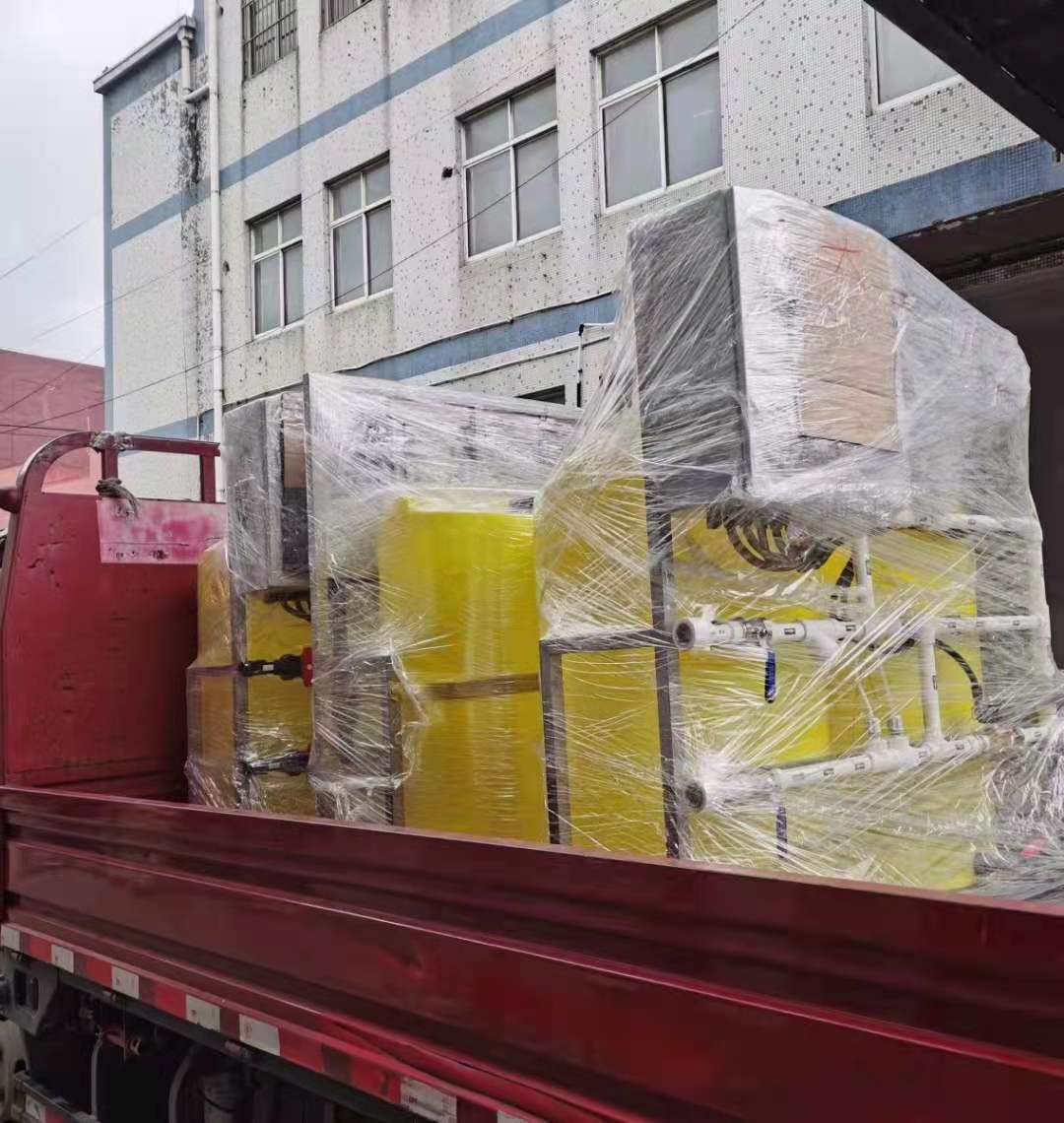 上海大塵微項目:一批智能加藥裝置及不銹鋼水箱裝車發貨完成,上海奧棟質量保證!
