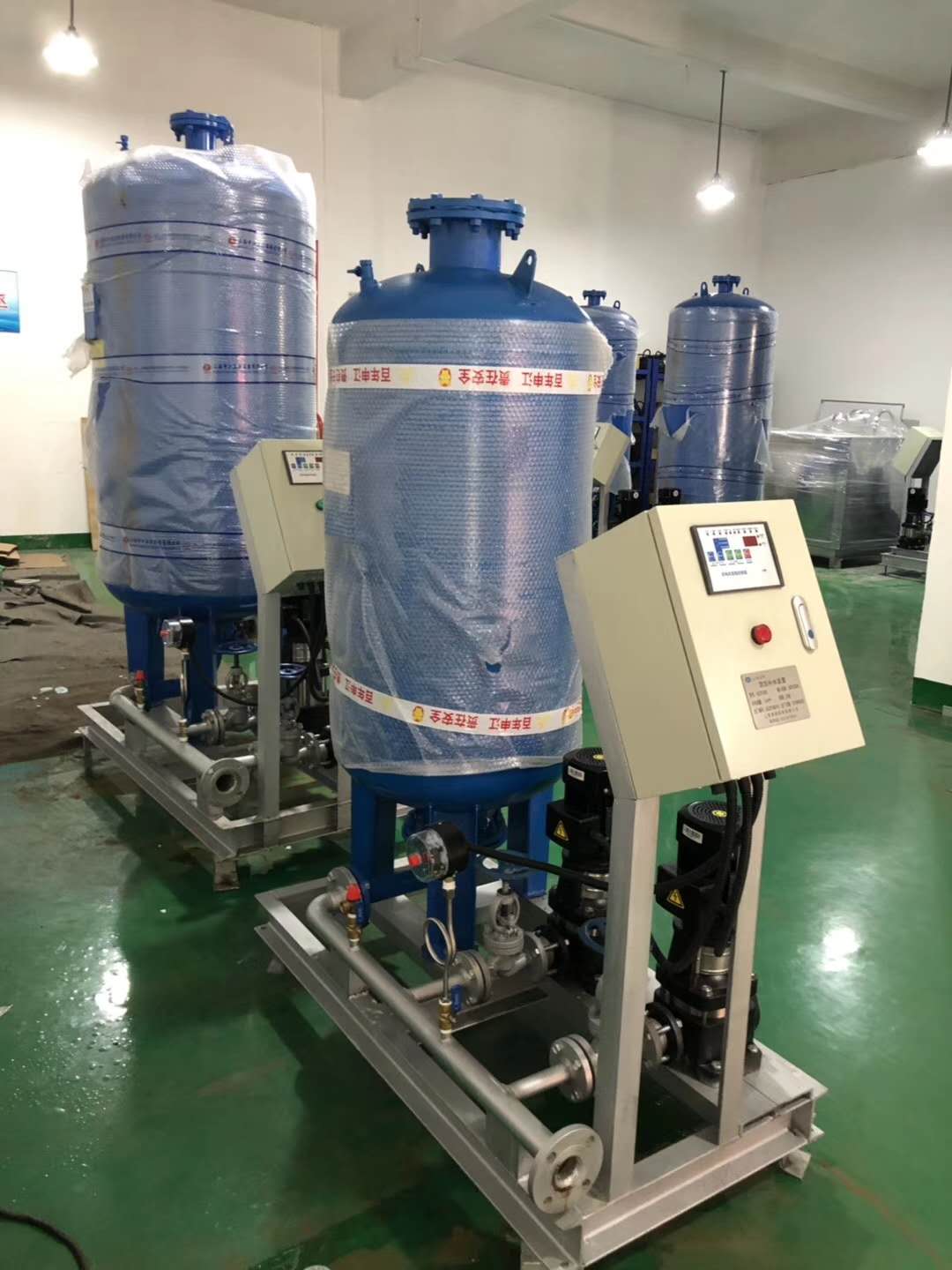 北京神華項(xiàng)目、上海華為項(xiàng)目、海寧正泰三期項(xiàng)目:一批智能定壓補(bǔ)水裝置及不銹鋼水箱制作完成,同事們辛苦了!