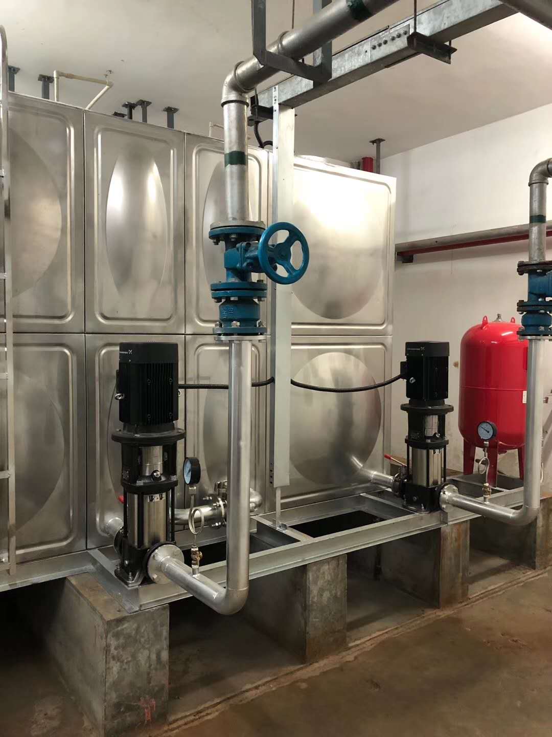 上海航天項目:加班安裝變頻供水設備及不銹鋼水箱,全部安裝調試結束,同事們辛苦了!